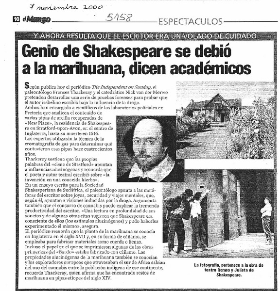 Genio de Shakespeare se debió a la marihuana, dicen académicos.
