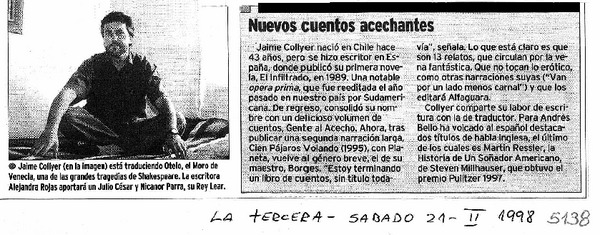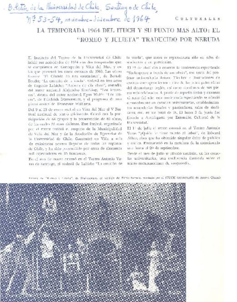 Chilenos retraducen a Shakespeare [artículo] Andrés Gómez <y> Rodolfo Arenas.
