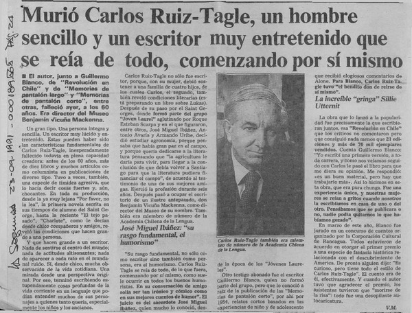 Virgilio Hargous, don Roque y Scarpa, tres personajes de Carlos Ruiz-Tagle  [artículo] Roque Esteban Scarpa.