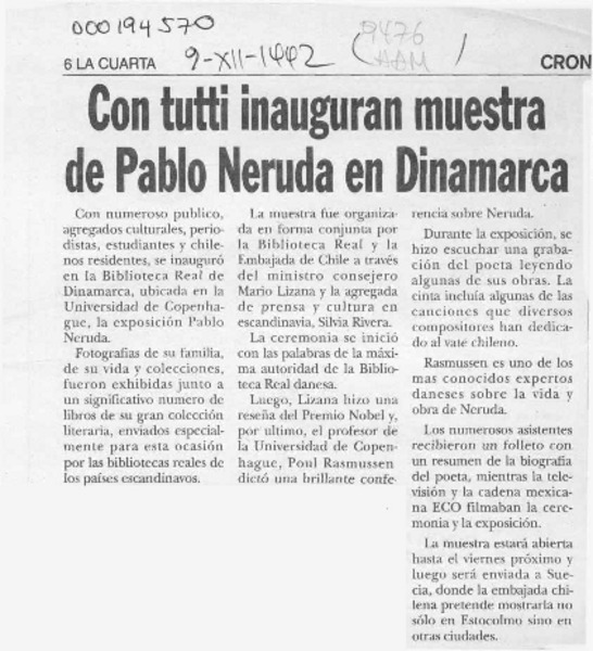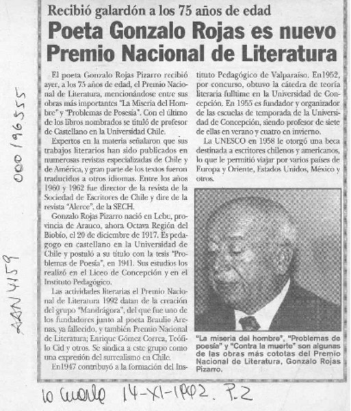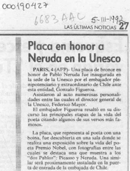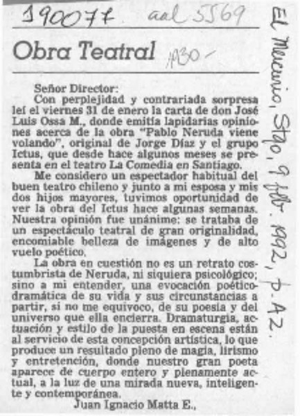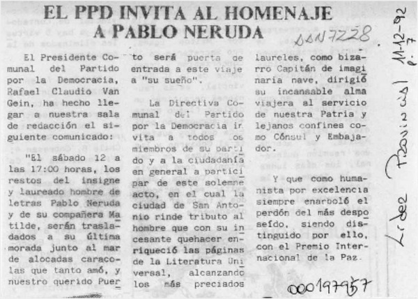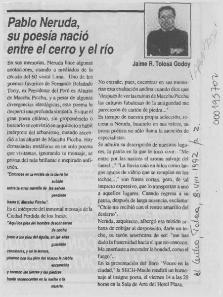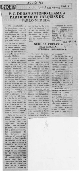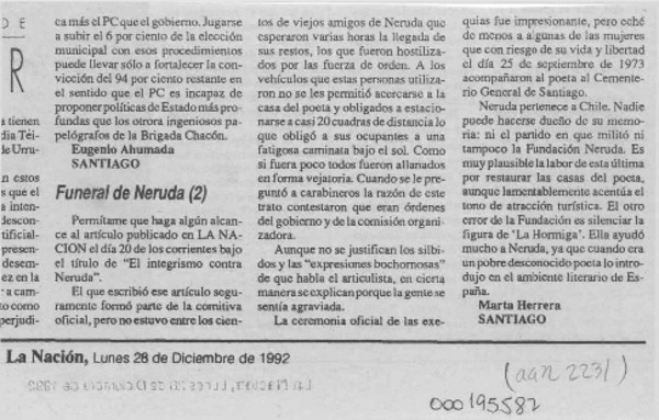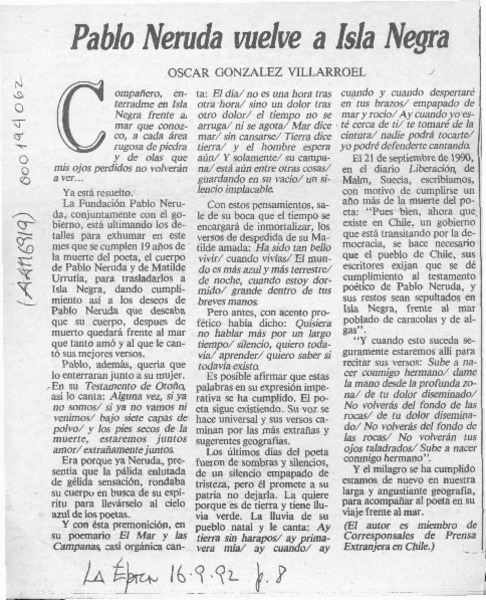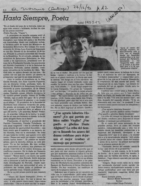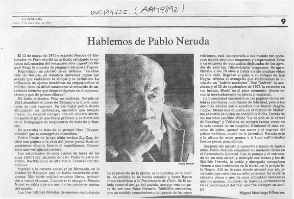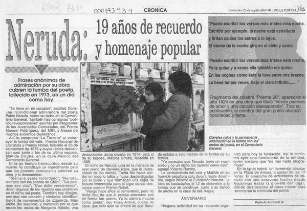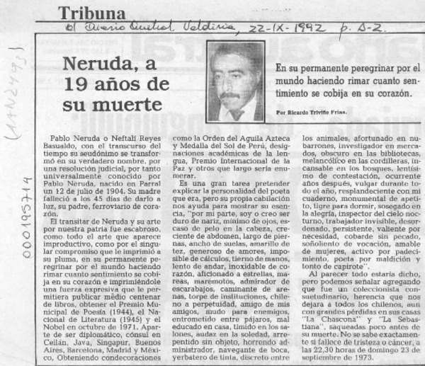 19 años del adiós de Neruda  [artículo] Juan Meza Sepúlveda.