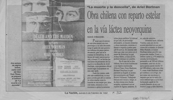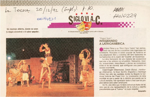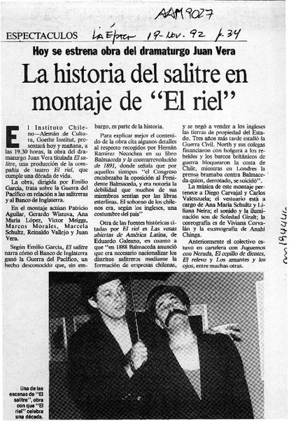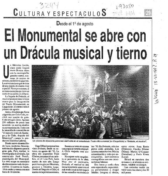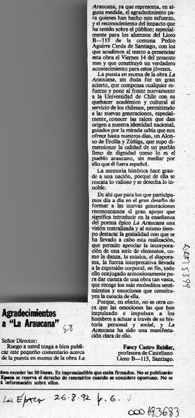 A fines de junio estrenarán montaje de "La Araucana"  [artículo].