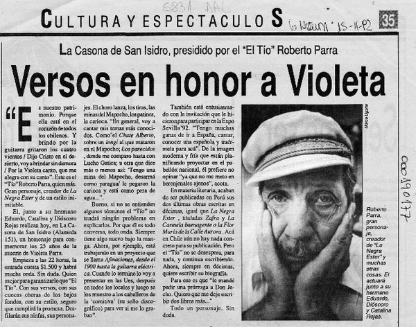 Violeta Parra [artículo] Héctor E. Espinoza Viveros.
