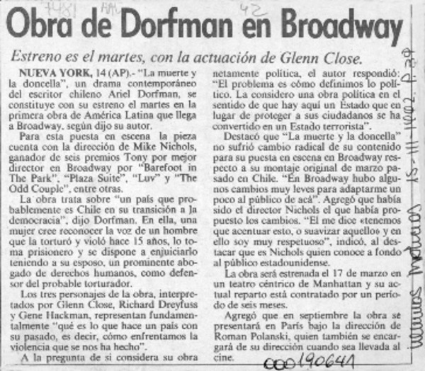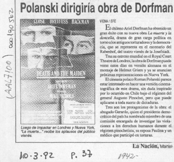 Ya llegó hasta Perú "Ardiente paciencia" [artículo].