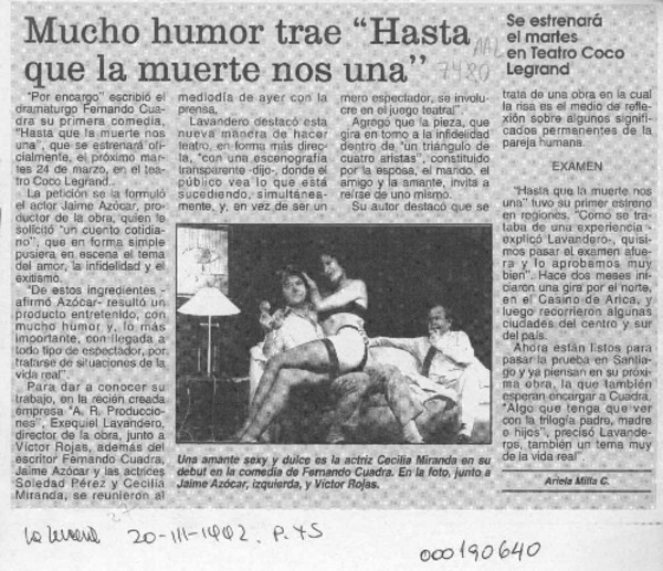 Actriz Peggy Cordero debuta como directora  [artículo].