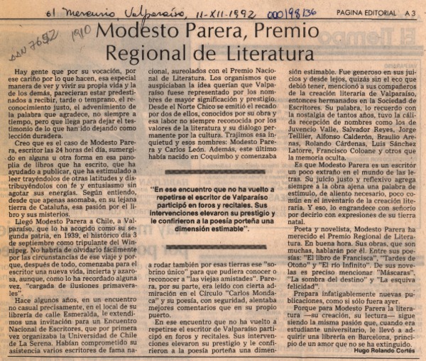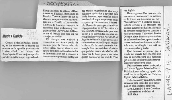 A don Matías y a Homero [artículo] Juan Rubén Valenzuela.