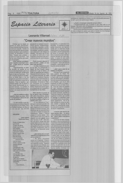 Waldo Rojas, "Es estimulante sentir que mi poesía no ha sido olvidada"  [artículo] Angélica Rivera.