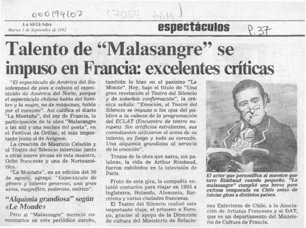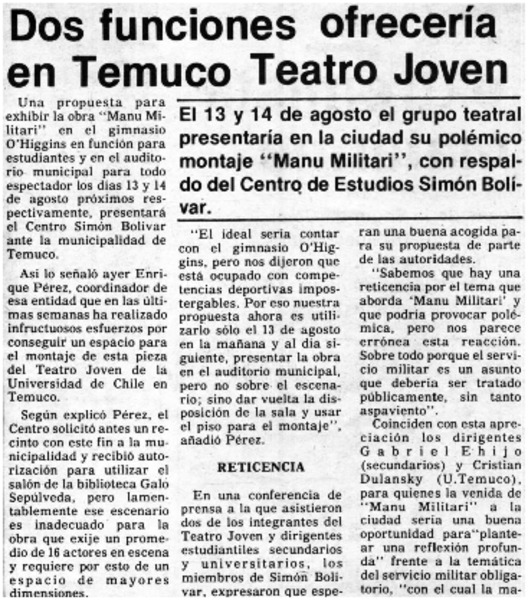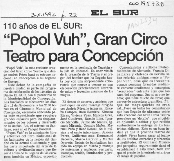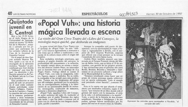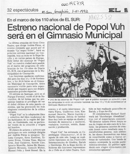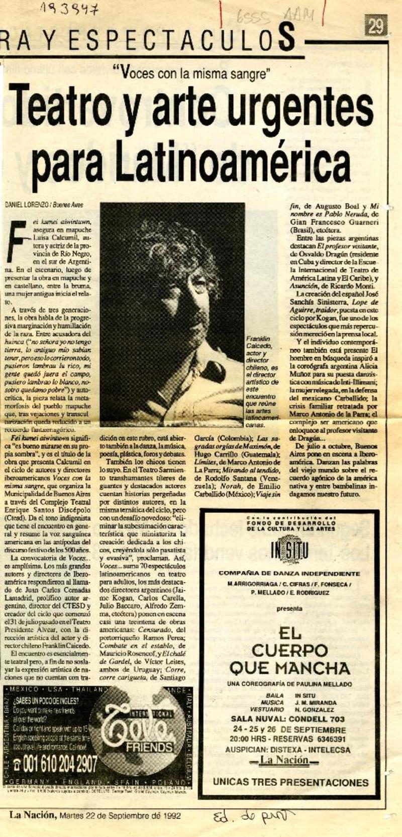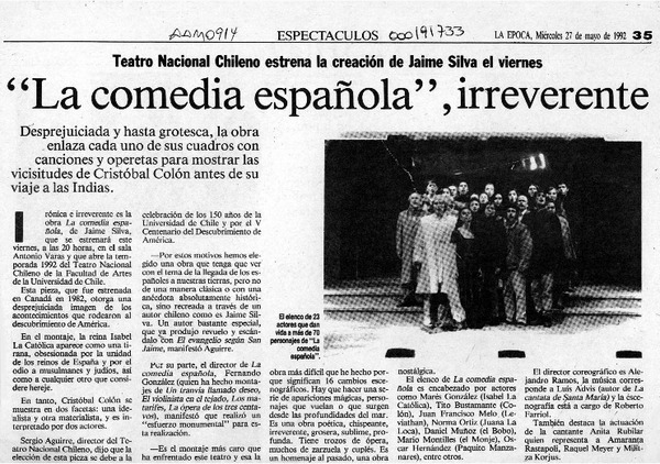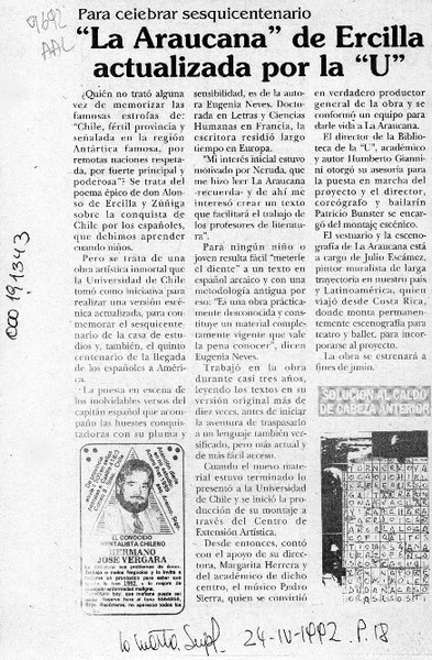 28 actores y 10 bailarines estrenarán "La Araucana"  [artículo].
