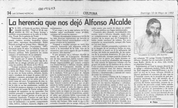 Adiós a Alfonso Alcalde [artículo] Marino Muñoz Lagos.