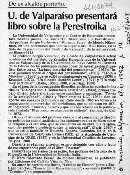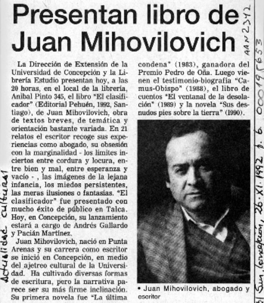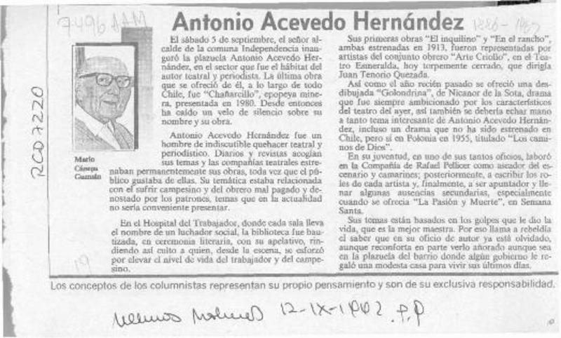 Actor Sotoconil escribió historia del teatro de "U"  [artículo].