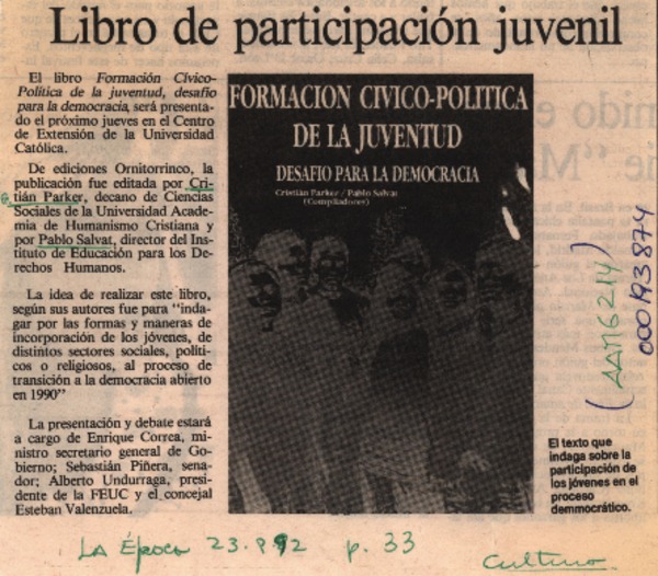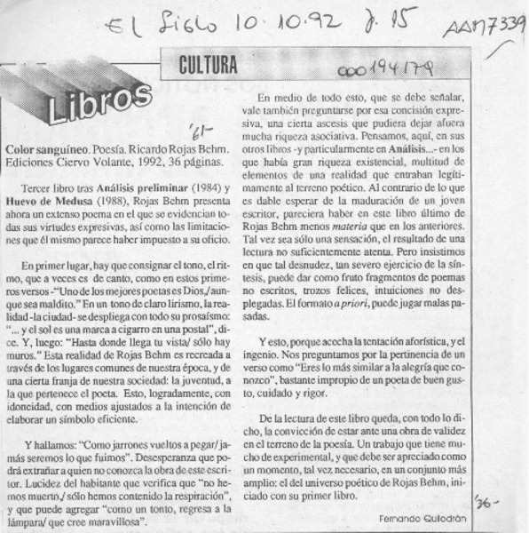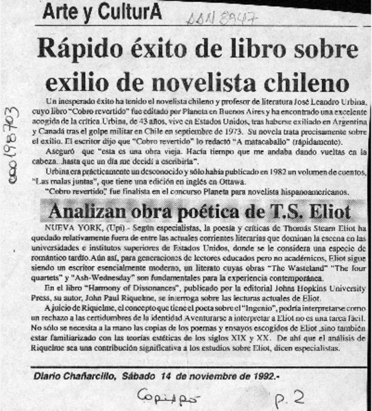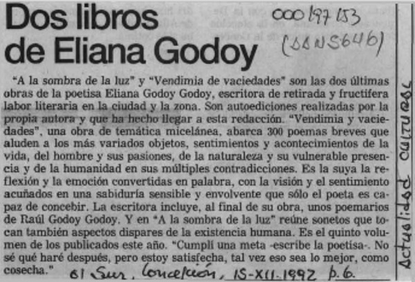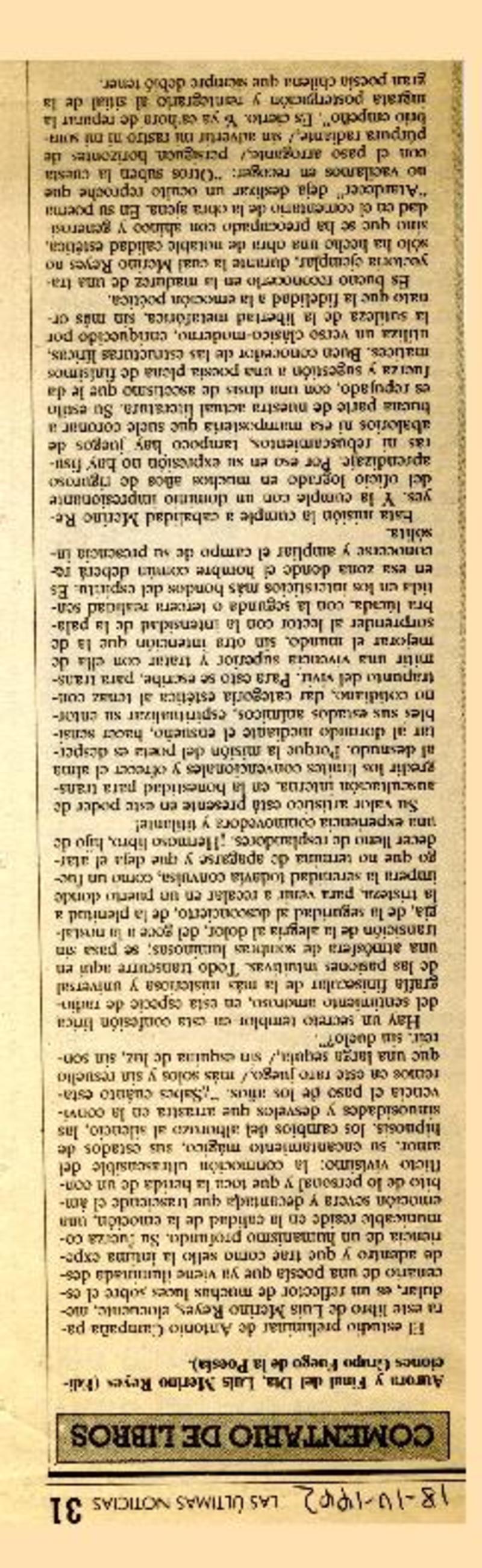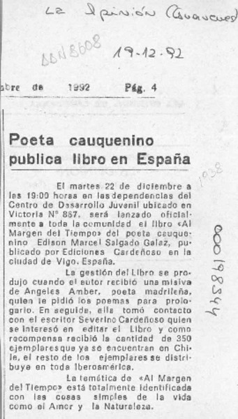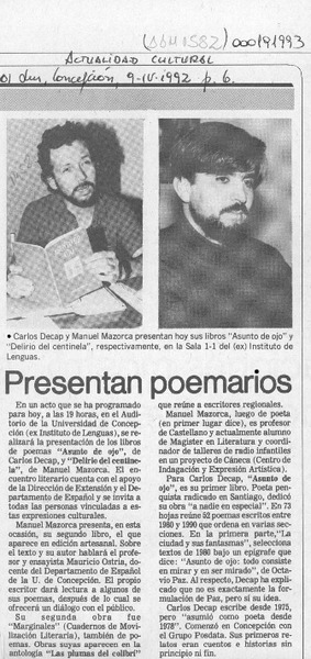 Actualidad cultural, lanzamiento de poemario [artículo].