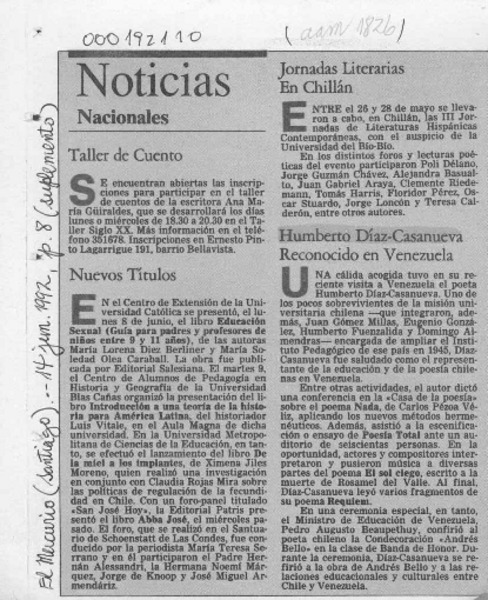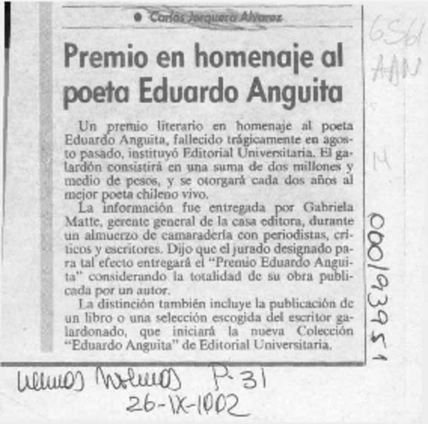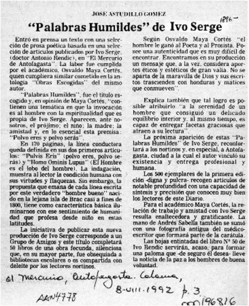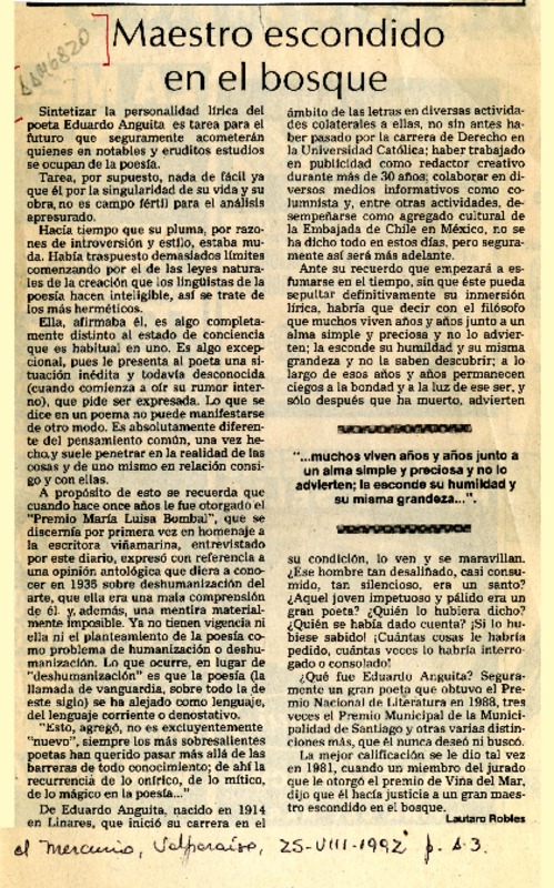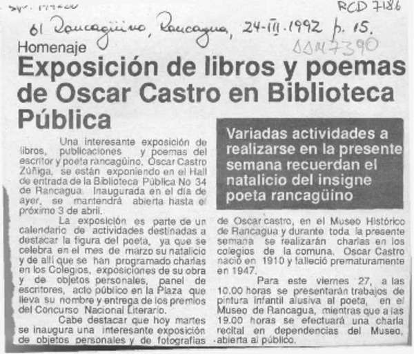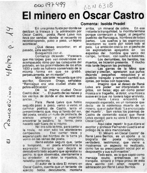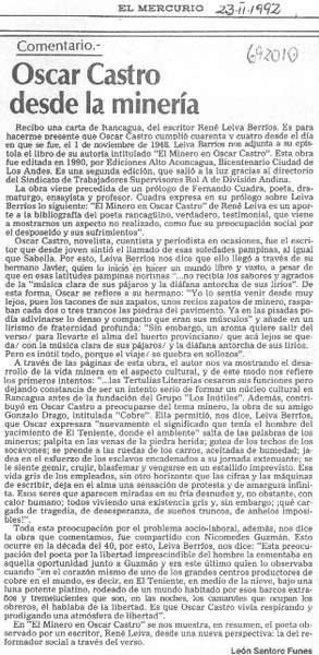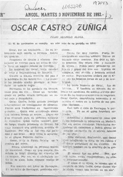 1 de noviembre, Oscar Castro [artículo] Juan Meza Sepúlveda.