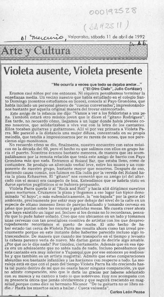 Violeta ausente, Violeta presente  [artículo] Carlos León Pezoa.