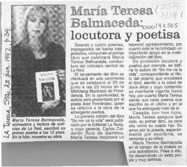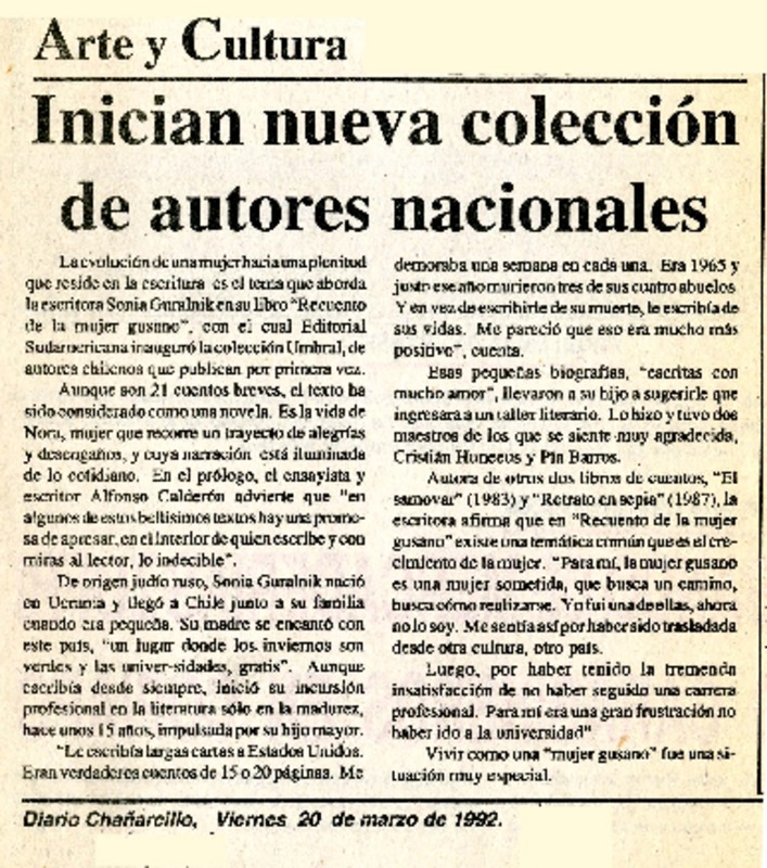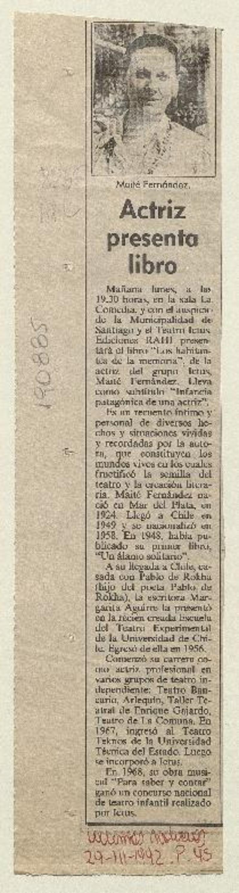 Actriz Malucha Pinto debuta como poetisa [artículo].