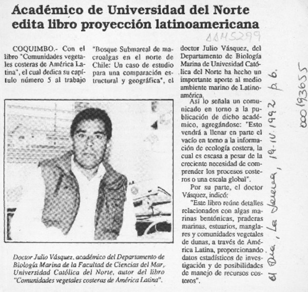 Académico de Universidad del Norte edita libro proyección latinoamericana  [artículo].