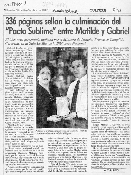 336 páginas sellan la culminación del "Pacto Sublime" entre Matilde y Gabriel  [artículo] Yuri Rojo.