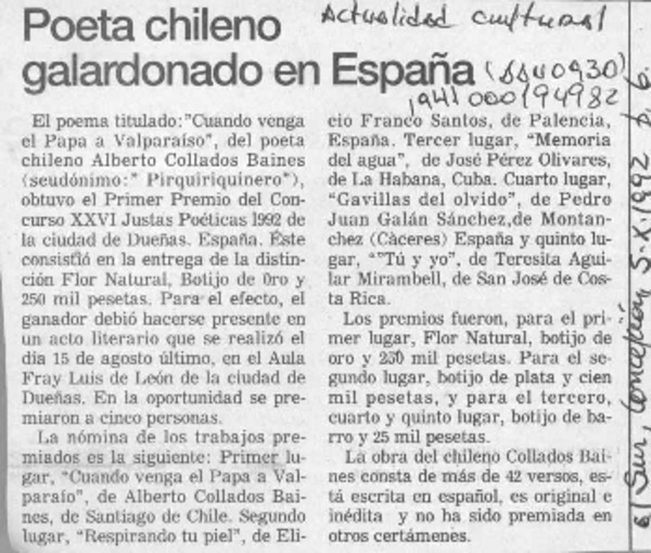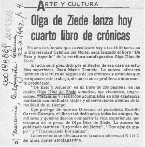 Actualidad cultural, lanzamiento de poemario  [artículo].