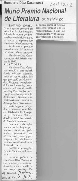 Adiós a Díaz-Casanueva  [artículo] Rigoberto Rubilar Domínguez.