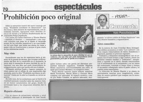Agarran pa'l fideo a Colón en estreno del Teatro Nacional [artículo].