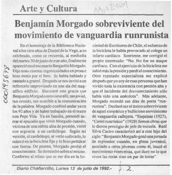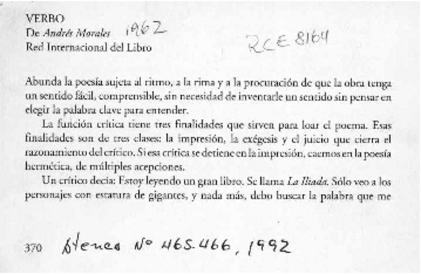 Acerca del "Verbo" de Andrés Morales [artículo] Hugo Montes Brunet.