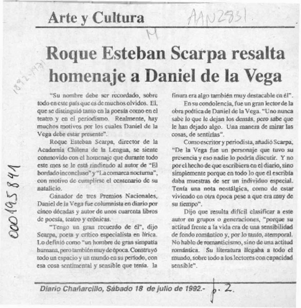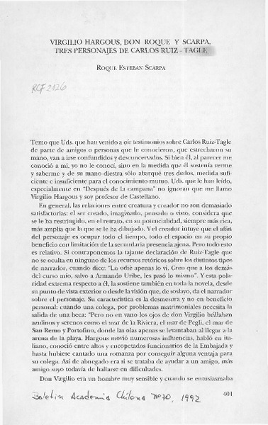 Virgilio Hargous, don Roque y Scarpa, tres personajes de Carlos Ruiz-Tagle [artículo] Roque Esteban Scarpa.