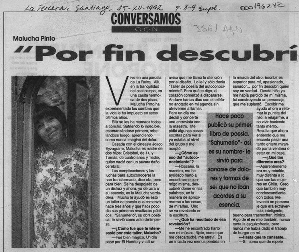 Actriz Malucha Pinto debuta como poetisa  [artículo].