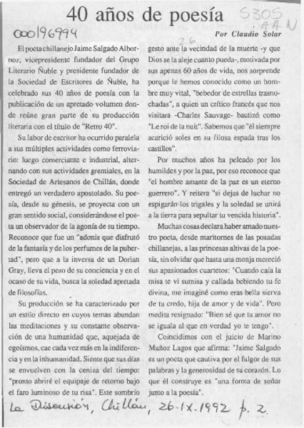 40 años de experiencia  [artículo] Carmen Ortúzar.