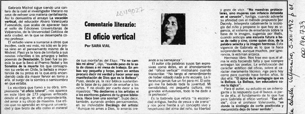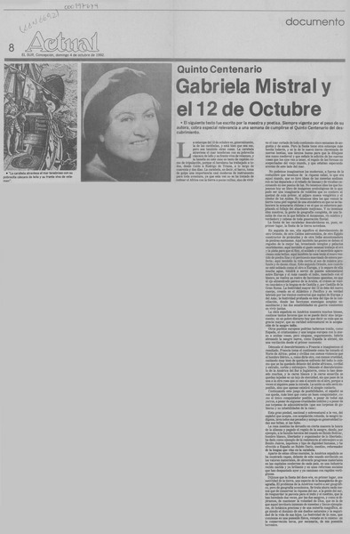 A 35 años del viaje de Gabriela [artículo] Héctor Edo. Espinoza Viveros.