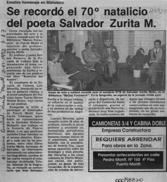 70 años del nacimiento de Salvador Zurita Mella  [artículo].