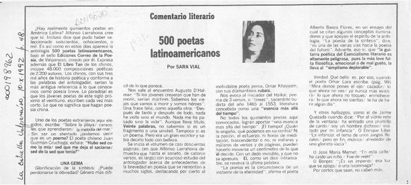 500 poetas latinoamericanos [artículo] Sara Vial.