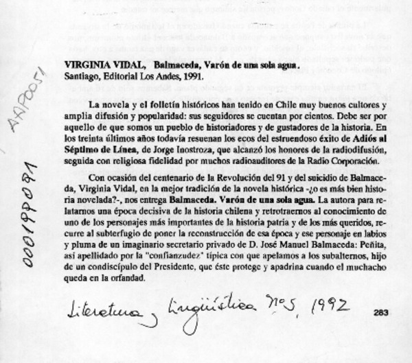Virginia Vidal y un libro sobre Balmaceda [artículo] Wellington Rojas Valdebenito.
