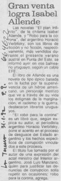Ya llegó hasta Perú "Ardiente paciencia"  [artículo].