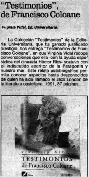 Virginia Vidal y un libro sobre Balmaceda  [artículo] Wellington Rojas Valdebenito.