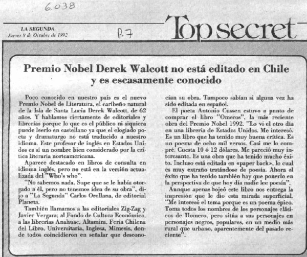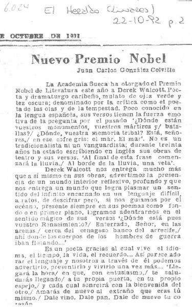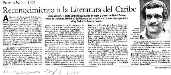 Walcott, poeta antillano, ganó el Nobel. [artículo]