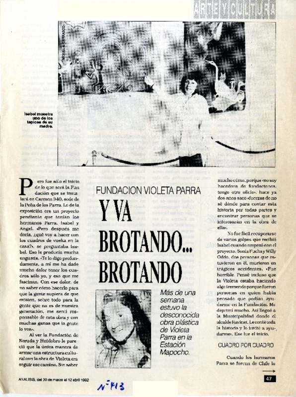 Y va brotando -- brotando [artículo] Margarita Cea.
