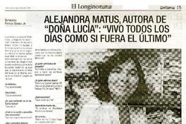 Alejandra Matus, autora de "Doña Lucía": "Vivo todos los días como si fuera el último" [artículo] Patricio Sesnich Jr.
