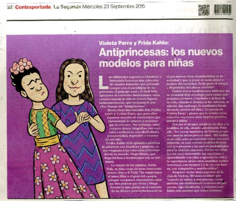 Antiprincesas: los nuevos modelos para niñas. [artículo] La Segunda (Diario : Santiago, Chile)-- septiembre 23, 2015, página 32. .