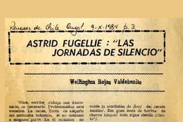 Astrid Fugellie: "Las jornadas del silencio" [artículo] / Wellington Rojas Valdebenito. Renacer de Chile (Diario : Angol, Chile)-- oct. 9, 1984, p. 3. .