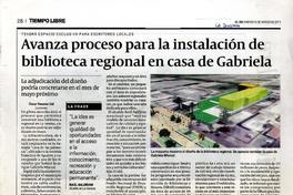 Avanza proceso para la instalación de biblioteca regional en casa de Gabriela [artículo] Óscar Rosales Cid.