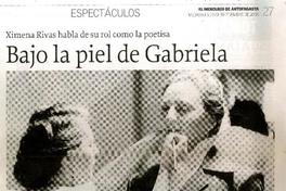 Bajo la piel de Gabriela. [artículo] El Mercurio (Diario : Antofagasta, Chile)- septiembre 23, 2009, página 27. .