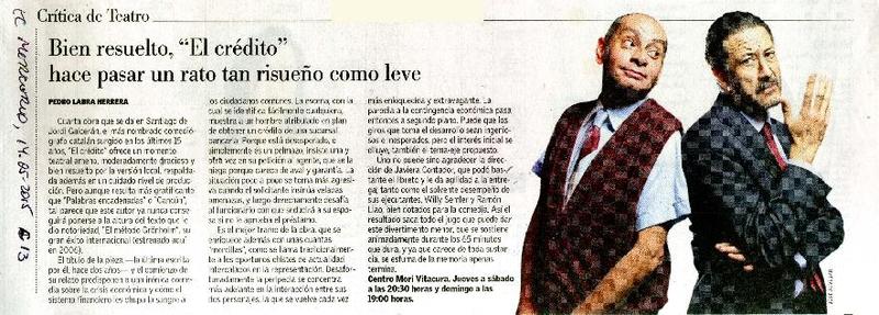 Bien resuelto, "El crédito" hace pasar un rato tan risueño como leve [artículo] Pedro Labra Herrera.