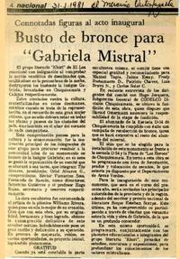 Busto de bronce para "Gabriela Mistral" Connotadas figuras al acto inaugural [artículo] : El Mercurio (Antofagasta, Chile)-- ene. 31, 1981, p. 4. .