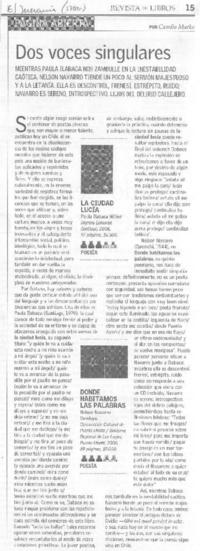 Dos voces singulares [artículo] / Camilo Marks. El Mercurio (Diario : Santiago, Chile)-- nov. 19, 2006, p. E15 (Revista de libros) .