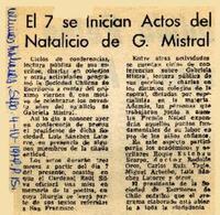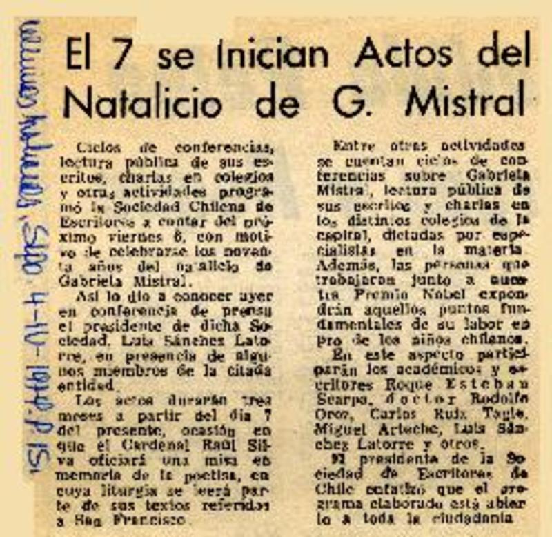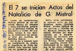 El 7 se inician actos del natalicio de G. Mistral [artículo]