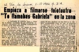 Empieza a filmarse teleteatro "Te llamabas Gabriela" en la zona [artículo] El Día (diario : La Serena, Chile)-- feb. 1, 1982, p. 3A. .