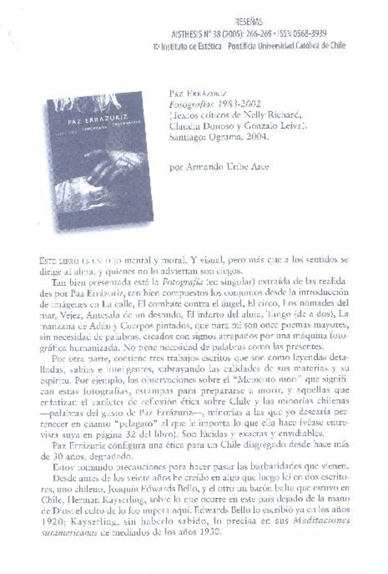 Fuente: Aisthesis (Revista : Chile)-- no. 38 (2005) p. 266-269.