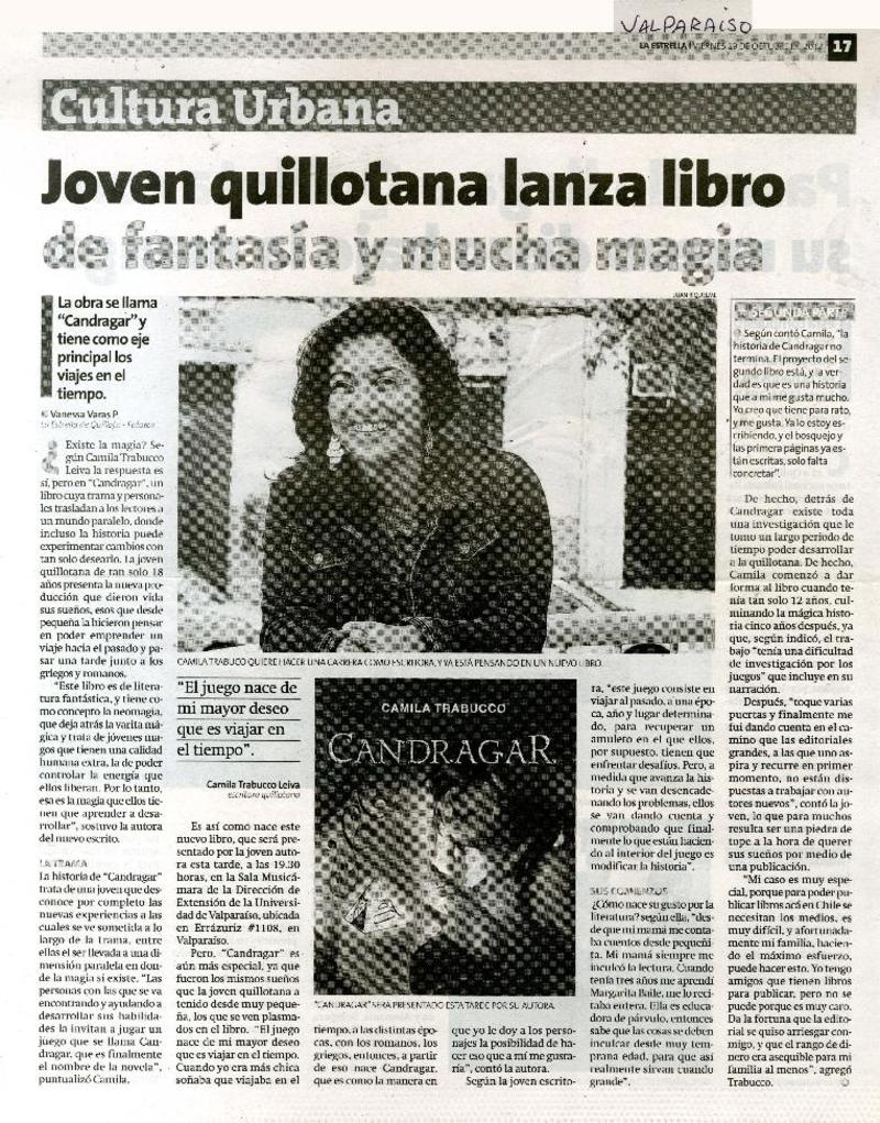 Joven quillotana lanza libro de fantasía y mucha magia [artículo] Vanessa Varas P.