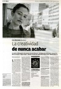 La creatividad de nunca acabar (entrevista) [artículo] / Marcelo López Marchant. El Mercurio de Antofagasta (Diario : Antofagasta, Chile)-- nov. 4, 2012, p. 18. .