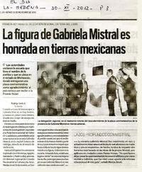 La figura de Gabriela Mistral es honrada en tierras mexicanas [artículo] / Rodrigo Solís A. El Día (Diario : La Serena, Chile)-- nov. 30, 2012, p. 3. .
