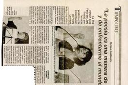 La poesía es una manera de vivir y de enfrentarme al mundo [artículo] / Vanessa Garrido. El Centro (Diario : Talca, Chile)-- nov. 29, 2010, p. 23 .