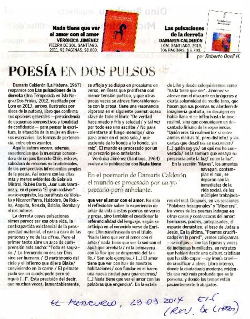 Las pulsaciones de la derrota [artículo] / Roberto H. Onell El Mercurio (Diario : Santiago, Chile)-- mar. 23, 2014, p. E 15 (Revista de Libros) .